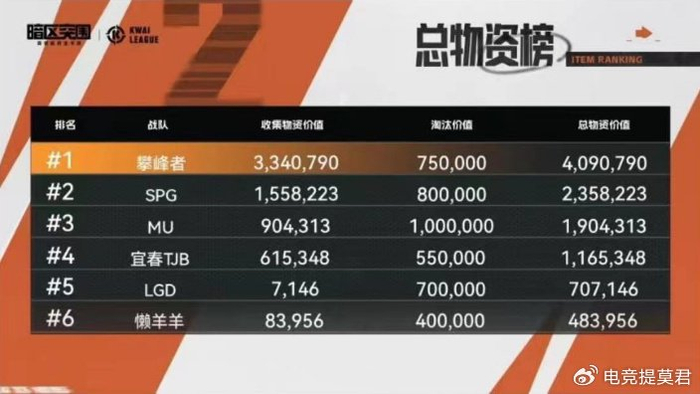 攀峰者的总物资价值可以说是遥遥领先 ,几乎是第二和第三的总和 ,如果单看收集物资价值的话则更为恐怖,直接独占半壁江山 。